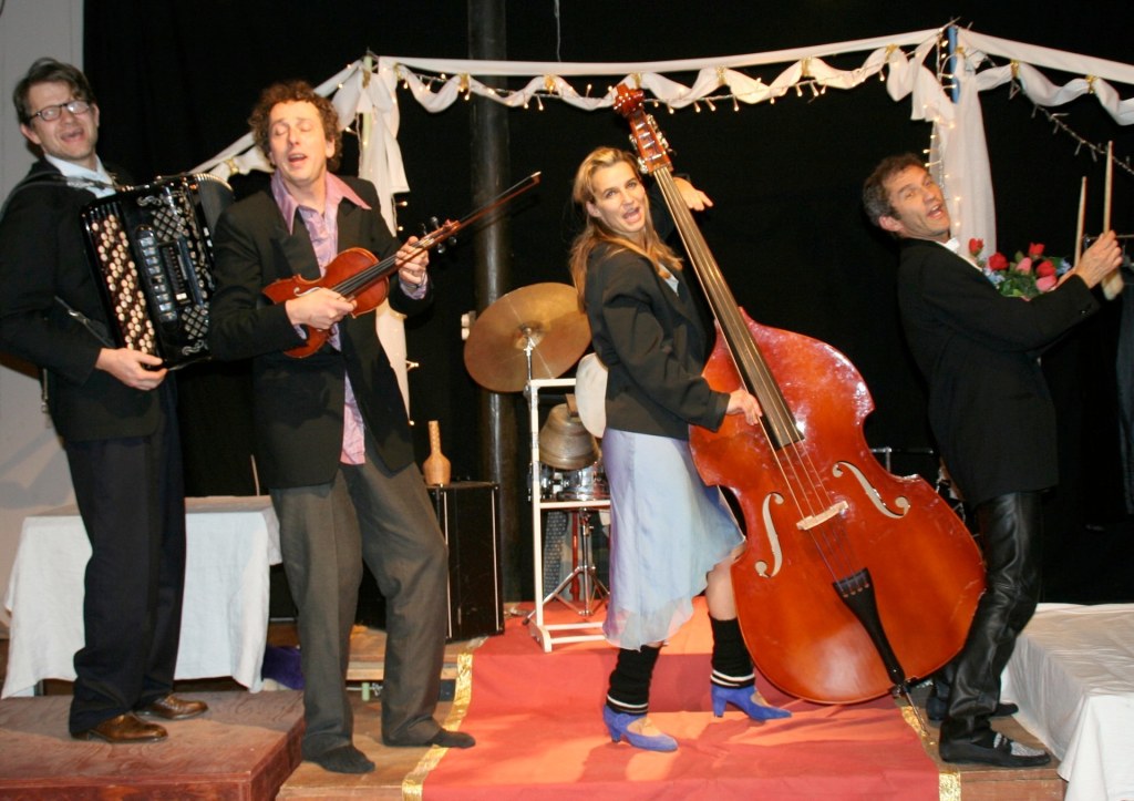 … Die Produktion beeindruckt durch poetische Schlichtheit und Einfallsreichtum. Mit einfachsten Mitteln wird die Bühne von einer Minute auf die andere von der Bahnhof-Unterführung zum festlich dekorierten Hochzeitssaal. Die Darsteller harmonieren perfekt. Schnelle Wechsel zwischen Tangos, Walzer, Tsiganes und Polkas und rasche Kostüm- und Rollenwechsel scheinen ein leichtes Spiel zu sein.
